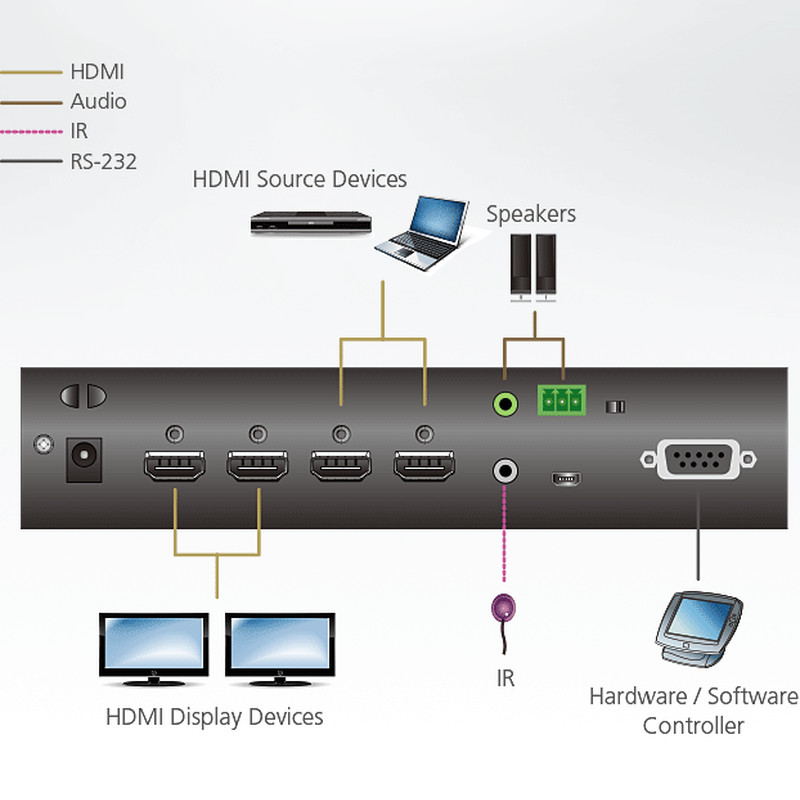 Aten 2x2 True 4K HDMI Matrix Switch with Audio De-Embedder