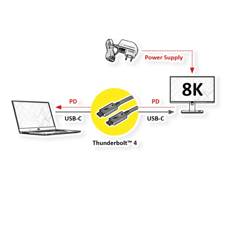 - Thunderbolt 4 cables with the USB Type C connector offer you the currently highest possible data transfer rate of up to 40GBit/s and full Power Delivery support (PD up to 20V 5A / 100W)! The cables also feature DP mode for particularly high-resolution image and sound transmission of up to 7680x4320 @60Hz (8K).Features